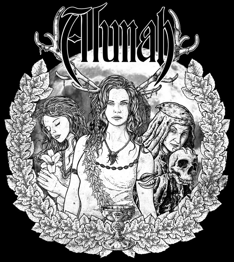 Shirt design for Alunah based on the triple goddess concept which is one of the themes behind their new album, Awakening the Forest. This shirt will be sold on their upcoming tour.