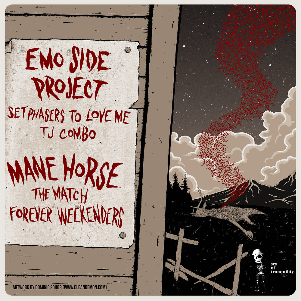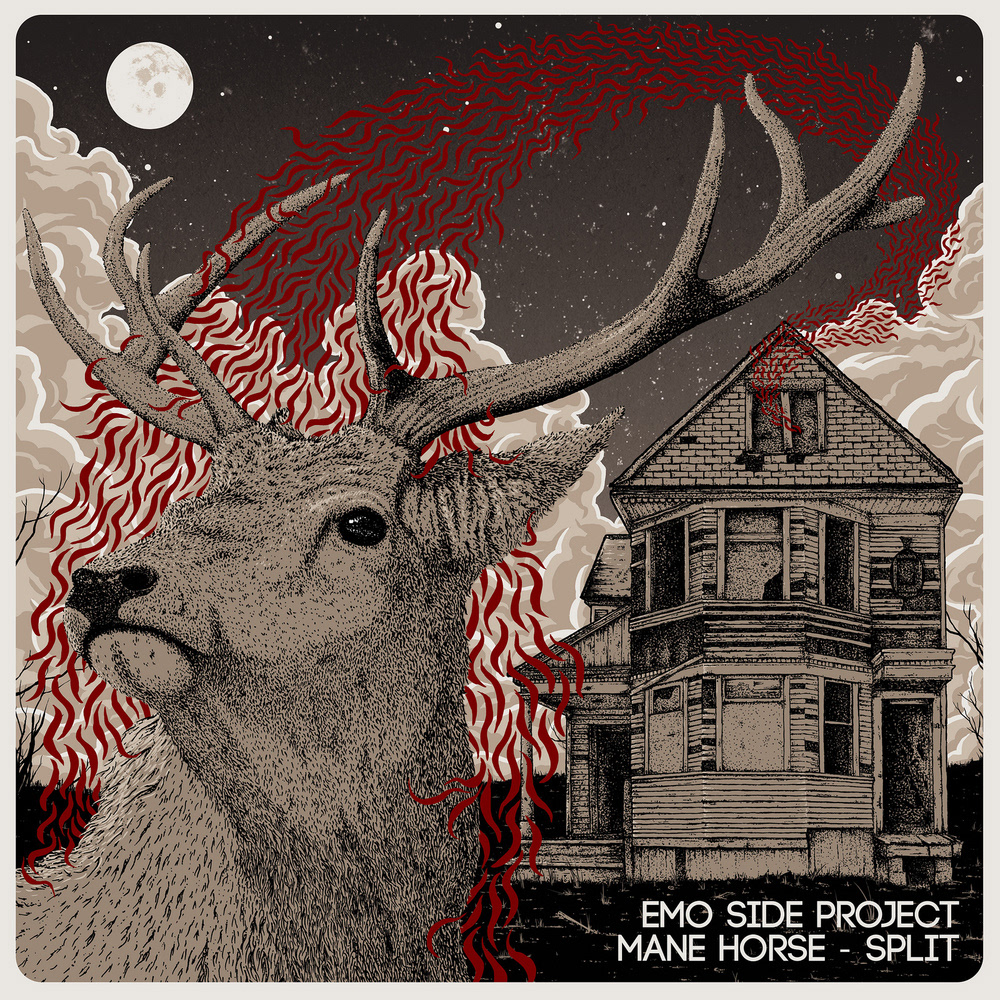 Front and back cover art design for this split EP release from Emo Side Project and Mane Horse. I was given free reign on this and came up with the sad tale of the stag as shown in these two images.