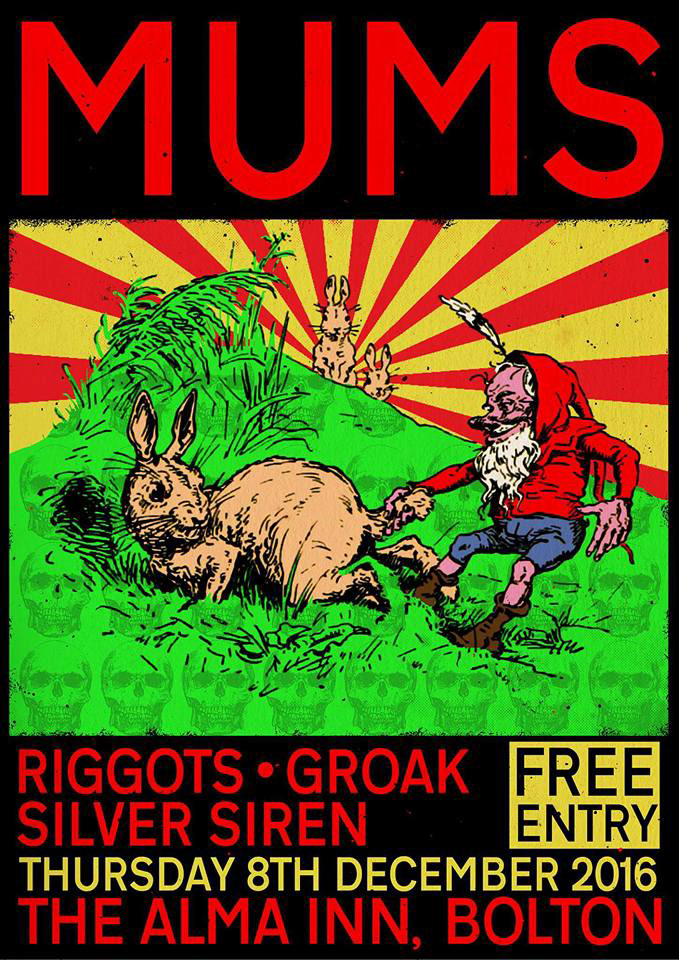 Poster I've done for a Mums show at The Alma. Outstanding line up and as you can probably tell, it's an homage to Kozik. Thanks to Ivan for asking me to do this.