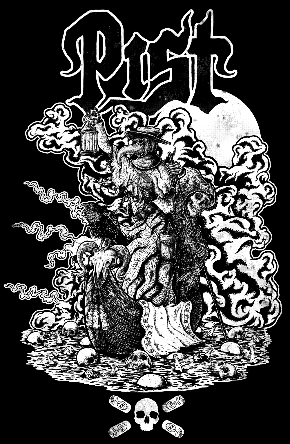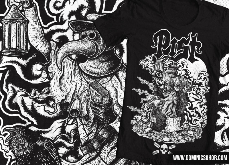 Shirt design for Pist. The brief was for something featuring a plague doctor and beer!