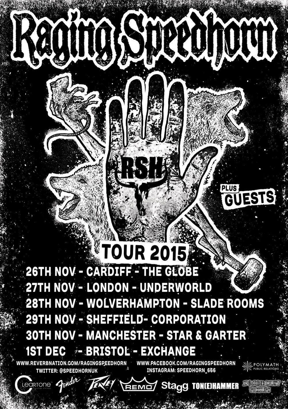 Poster design using elements of previous designs for the upcoming Raging Speedhorn tour.