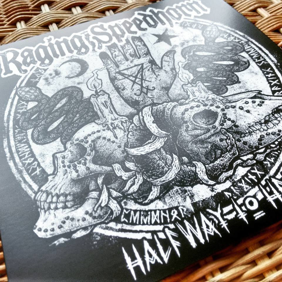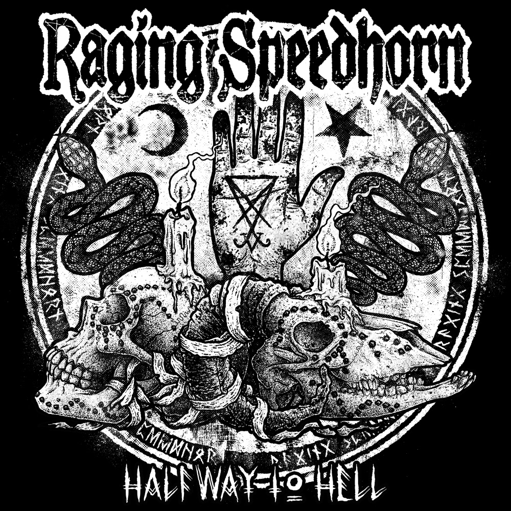 Cover artwork for the new single from Raging Speedhorn. This is available to order now from Palm Reader Records.